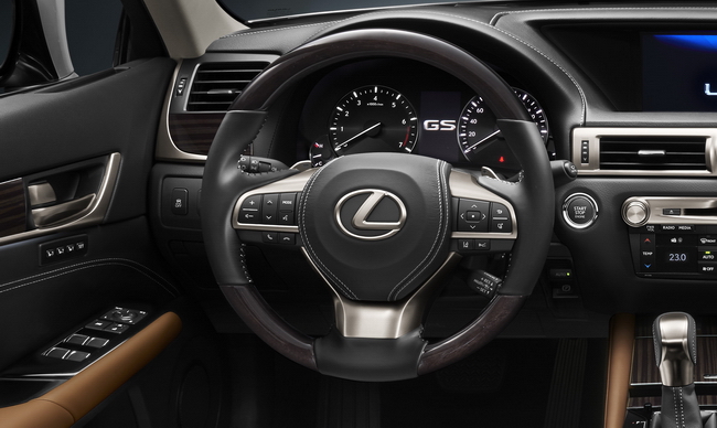 Nội thất của GS 2016 có vô lăng được thiết kế gọn và thể thao hơn với ốp gỗ, mạ bạc trang trí và bọc dacùng đường chỉ may tinh xảo khác màu, đồng thời bố trí lại các phím điều khiển trên vô lăng. Bảng táp lô được trang trí với ốp gỗ laser-cut cao cấp và các đường viền mạ bạc liền khối sang trọng kéo dài tới cửa gió điều hòa, chính giữa là đồng hồ cơ tích hợp thêm tính năng tự động điều chỉnh theo hệ thống định vị GPS.