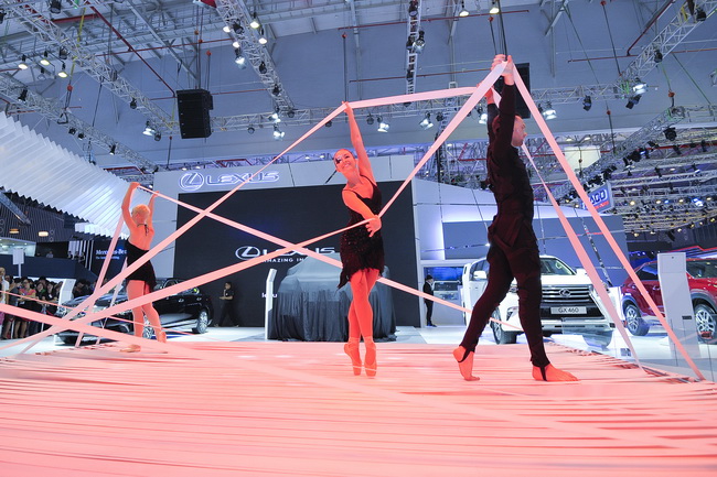 Tại sự kiện gian hàng Lexus được thiết kế theo tiêu chuẩn Lexus toàn cầu bao gồm: không gian trưng bày xe chia thành khu vực SUV và khu vực sedan, phòng đón tiếp khách VIP và góc cảm xúc thương hiệu. Khu vực SUV trưng bày đầy đủ dàn 04 mẫu SUV đẳng cấp như: LX570, GX460, RX350 và NX200t; và khu vực 2 mẫu xe tinh tế là LS460L và ES350. Việt Nam là thị trường duy nhất tại Đông Nam Á đã giới thiệu đầy đủ 4 dòng sản phẩm SUV của Lexus.