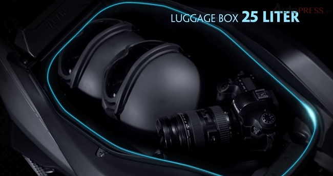 Ngoài ra, thể tích cố chứa đồ của NVX mới cũng khá lớn - 25 lít - Ước tính có thể để được 2 nón bảo hiểm dạng nửa đầu và có thể để thêm một vài món đồ khác.