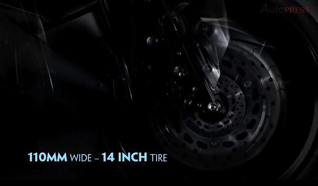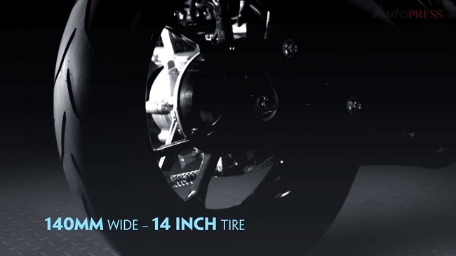 Về kích thước lốp, xe sẽ được trang bị lốp trước có bề ngang 110mm và lốp sau có bề ngang 140mm.