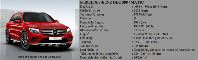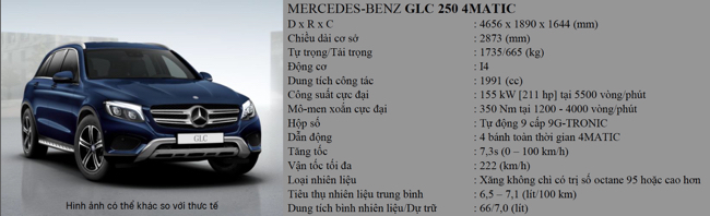 Thứ tư 20/04/2016 20:50 GMT+7Autopress.vn - Mẫu xe SUV cỡ nhỏ mới nhất của Mercedes-Benz là chiếc GLC sẽ chính thức ra mắt vào chiều nay. Tuy nhiên, bản thông số kỹ thuật cùng giá bán 1,769 tỷ cho GLC 250 và 1,919 tỷ cho GLC 300 AMG