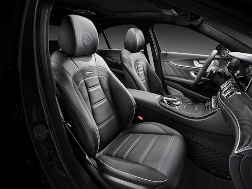 Nội thất E63 AMG tương tự bản tiêu chuẩn với trang bị ghế bọc da, vô-lăng ba chấu đáy phẳng, màn hình cảm ứng nối dài. Bản S có thêm tinh thể pha lê màu xám trên vô-lăng hướng 12 giờ, các nét chỉ khâu màu tương phản ở ghế, dây đai an toàn. Hãng xe Đức cung cấp thêm các gói tùy chọn tăng tính thể thao trên vô-lăng, ghế hoặc trang trí bằng sợi carbon, sợi thủy tinh màu bạc.