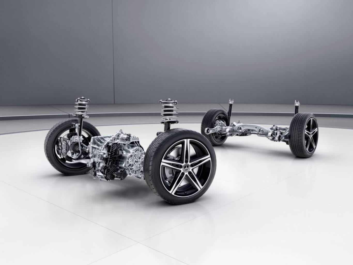 Bên dưới lớp vỏ thể thao, A-Class thế hệ mới cũng được trang bị 2 tùy chọn giảm xóc. Ở phía trước, hệ thống giảm xóc vẫn được giữ nguyên với thương hiệu MacPherson. Hệ thống giảm xóc sau trên A 200 và A 180 d chính là hệ thống giảm xóc đa lò xo. Phiên bản A 250 được trang bị giảm xóc 4 liên kết treo.