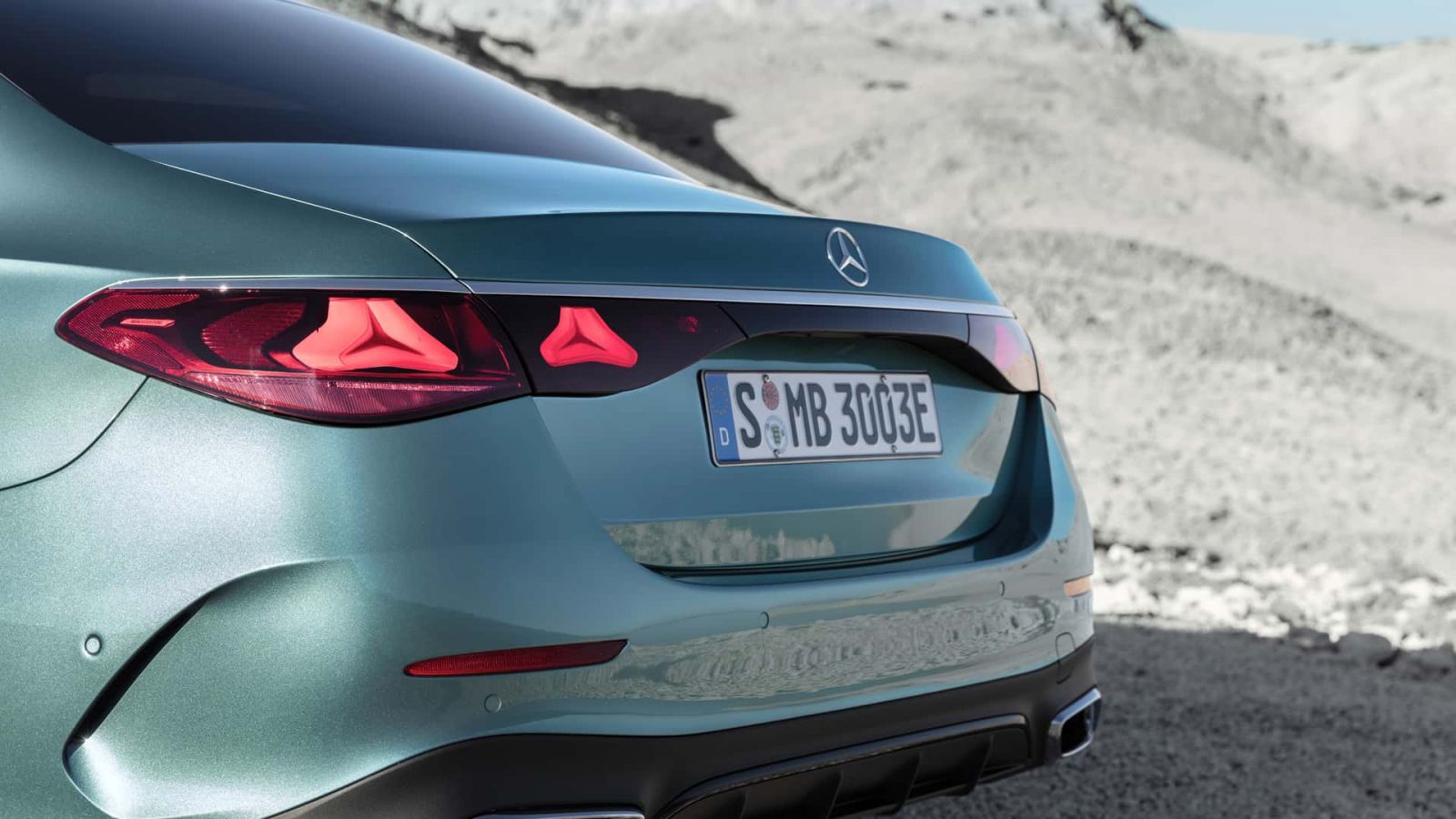 Thiết kế của Mercedes-Benz E-Class 2024 sở hữu đèn LED mới với tùy chọn đèn nền phía sau cùng với viền bao màu đèen bọc ốp mạ Chrome.
