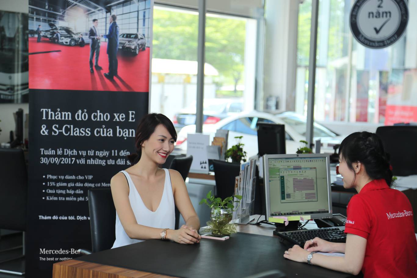Với hệ thống đại lý được nâng cấp và hoàn thiện theo tiêu chuẩn toàn cầu của tập đoàn Daimler, khách hàng sẽ được chào đón và sử dụng các dịch vụ theo tiêu chuẩn 5 sao. Những dịch vụ cao cấp bao gồm phòng chờ theo chuẩn VIP với Wi-Fi, thức ăn nhẹ và cả ghế mát-xa hoàn toàn miễn phí. Các chuyên gia được đào tạo theo chuẩn tiêu chuẩn nghiêm ngặt của MBV sẽ đảm bảo cho khách hàng có những chuyến đi an toàn và thoải mái nhất trên mọi cung đường.