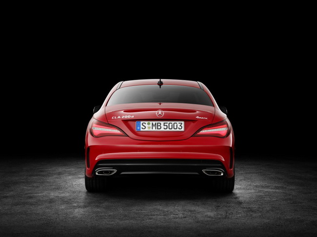 Với dòng CLA thì hãng quyết định bổ sung thêm cản va mới nổi bật trong màu bác, đen hoặc mạ crom trên cánh lướt gió, tất cả các mẫu trong dòng CLA đều được nâng cấp lưới tản nhiệt hình kim cương tiêu chuẩn. Đối với phía sau sẽ là cản va cùng tấm ốp được mạ crôm hoặc màu đen tùy chọn. Hai ống pô phía sau cũng được tích hợp với cản va sau tạo cảm giác xe dài thêm một chút. Đối với dòng CLA Shooting Brake thì vẫn sử dụng loại cản va thông thường.