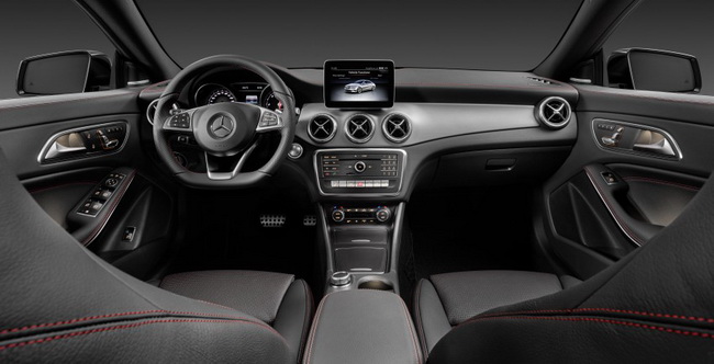 Bên trong Mercedes CLA 2017 thì không có quá nhiều thay đổi so với các mẫu trước về chất liệu vải bọc hay các phụ kiện trang trí. Vẫn sử dụng loại màn hình 8 inch dành cho tùy chọn thêm đối với nhu cầu của khách hàng. Mẫu số hiển thị của cụm đồng hồ mới cùng kim chỉ màu đỏ giúp người lái dễ nhìn hơn, vô lăng cũng được thiết kế lại giống với dòng C-Class.