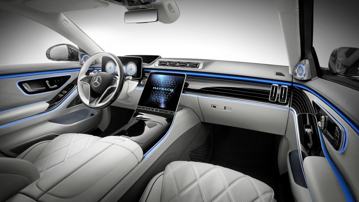 Bên trong cánh cửa đóng bằng điện là khoang cabin tràn ngập tiện nghi và vô cùng sang trọng của Maybach S-Class 2021. Có thể kể đến như: ghế bọc da Nappa, hàng ghế sau tiện nghi thương gia, 5 màn hình hiển thị bao gồm màn hình trung tâm OL, hệ thống âm thanh vòm Burmester 4D, tính năng khử tiếng ồn chủ động...Khách hàng cũng được cung cấp hàng loạt tính năng tùy chọn để cá nhân hóa chiếc xe.