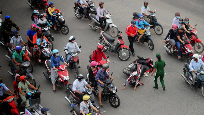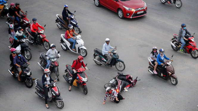 Một người té xe trên đường Sài Gòn, chục người ra đỡ