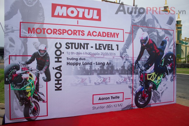 Tại học viện mô tô thể thao Motul, các khóa học được chia thành các cấp bậc từ cơ bản đến nâng cao nhằm mục đích giúp mọi người dễ dàng tiếp cận với bộ môn được xem là mới ở Việt Nam này. Khóa học đầu tiên được Motul thiết kế dành riêng cho stunt dưới sự hướng dẫn của Aaron Twite - stunter hàng đầu thế giới đến từ Mỹ sẽ giúp cho các vận động viên đã từng tập luyện stunt lẫn những người chưa từng chơi qua sẽ được cung cấp thêm các kiến thức cơ bản và vững vàng hơn khi chơi môn thể thao này.