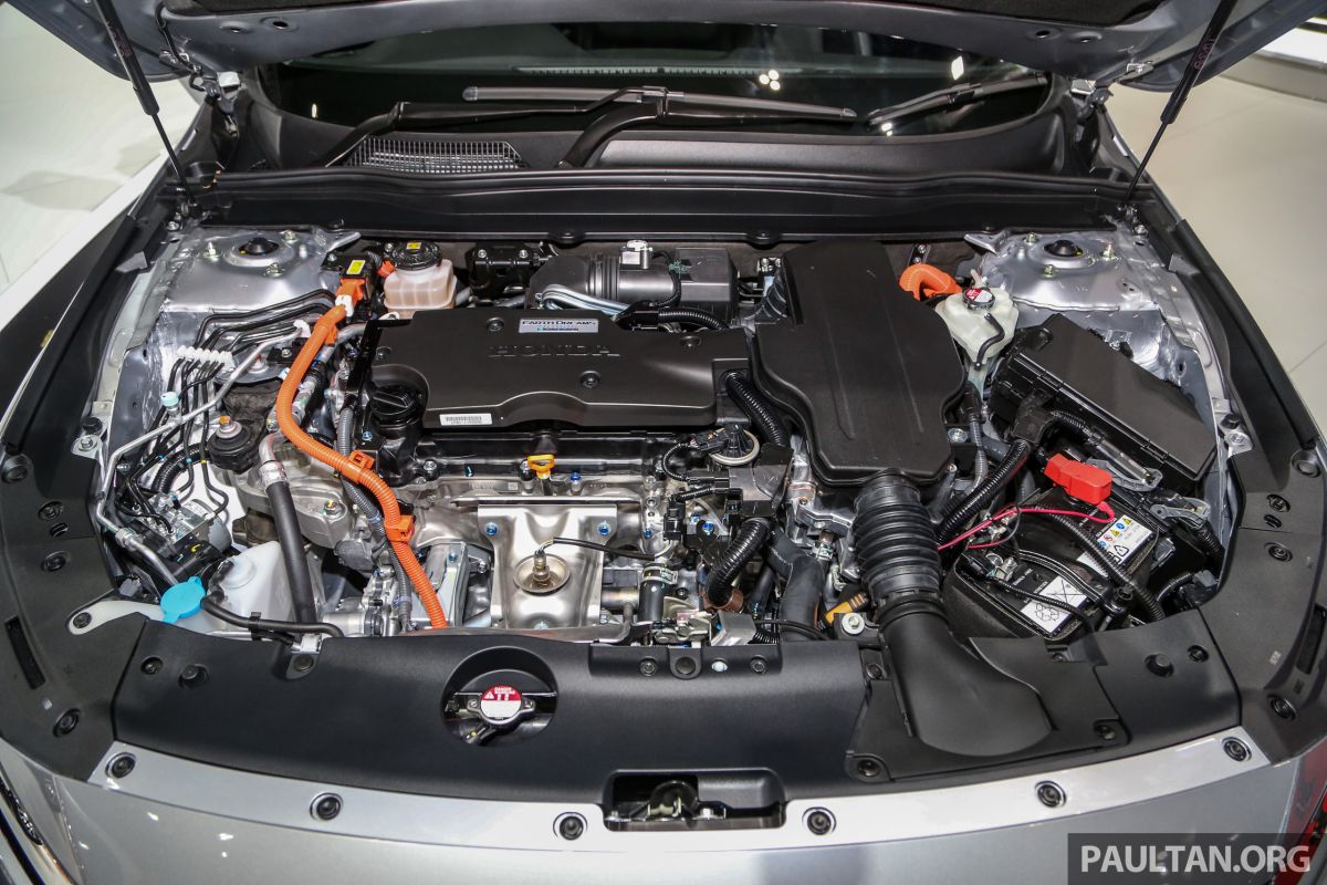 Phiên bản Accord Hybrid với hệ thống Sport Hybrid i-MMD là kết hợp của động cơ 2.0 lít cung cấp 145 mã lực/175 Nm và 2 động cơ cho điện tổng công suất 215 mã lực. Cụm pin lithium-ion được đặt dưới sàn xe giúp mở rộng diện tích cốp sau.