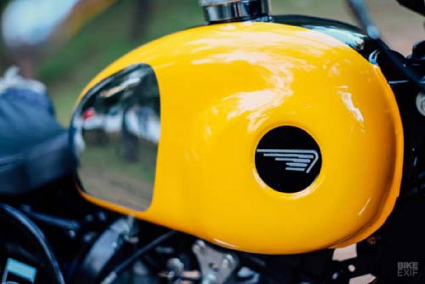 Bình xăng của xe được sơn màu vàng đi kèm với một sọc màu đen, nắp bình xăng được khoan một lỗ nhỏ để lấy nhiên liệu vào bộ chế hòa khí. Bộ chắn bùn cũng được gắn cao hơn nguyên bản, vỏ bọc động cơ cũng được đánh bóng. Khung xe phụ cũng được thiết kế thêm với một vòng lặp bắt buộc để giữ chắn bùn. Ghế ngồi khá nhỏ, với một miếng đệm hành khách ở phía sau.