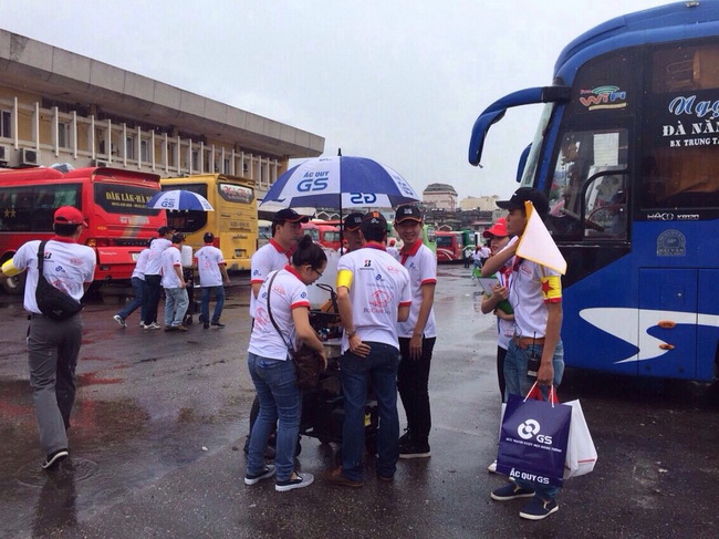 Đội kỹ thuật của lốp Bridgestone, ắc quy GS và Bệnh viện ô tô tại bến xe Giáp Bát.