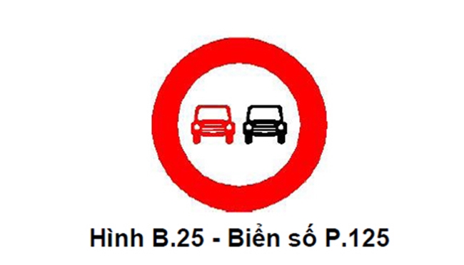 Biển cấm các loại xe cơ giới vượt nhau kể cả các xe được ưu tiên theo luật định. Được phép vượt xe môtô 2 bánh, xe gắn máy.