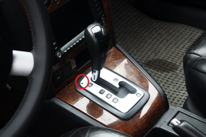 Lúc này Shift Lock phát huy tác dụng. Trên một số xe làm nút này nhô cao, tài xế ấn giữ vào đó để di chuyển cần số. Nhưng trên xe khác nút này lại bị ẩn, chỉ có một nắp nhỏ như trên hình vẽ. Lúc đó cần sử dụng vật mỏng, cứng gỡ nắp đậy ra, sau đó gạt lẫy nhỏ phía trong để di chuyển cần số.