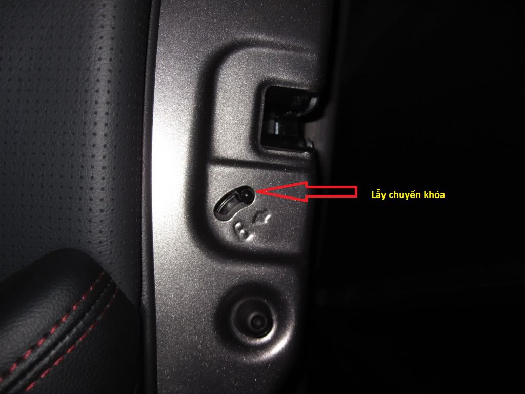 Lẫy khóa trẻ em. Khi gạt chốt, cửa sẽ không thể mở từ bên trong. Thường chỉ có cánh cửa phía sau mới có chốt này, vì nhà sản xuất quan niệm, vị trí an toàn khi cho trẻ em đi xe là ở hàng ghế sau.