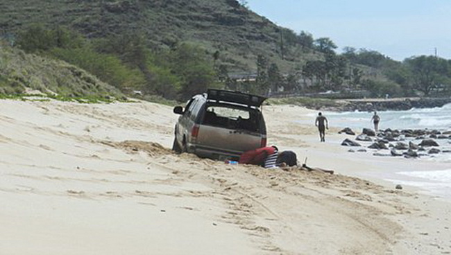 Và nếu xe không thể tiến về phía trước, thì ta nên đào rãnh phía sau các bánh xe cho chạm tới đáy bánh rồi nên tìm một tấm ván hoặc vật cứng ghim xuống cát để chịu lực bẩy và cài số thấp nhất rồi nhấn mạnh chân ga cho xe vọt lên. Và nếu xe không thể lùi thì nên áp dụng chiều ngược lại để đưa xe ra khỏi cát lún.