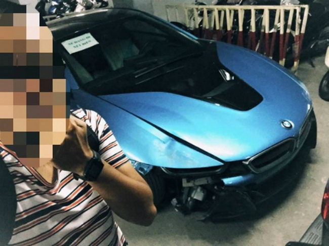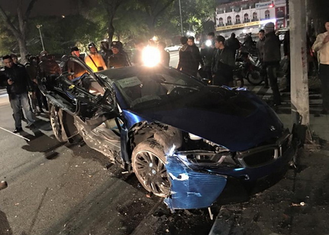 Vụ tai nạn xảy ra hôm 5/2/2016, chiếc i8 màu xanh ngọc mất lái lao lên vỉa hè, đâm vào một cửa hàng, khi vào cua trên đường Đinh Tiên Hoàng hướng ra đài phun nước gần hồ Gươm. Chiếc BMW i8 bị hư hỏng nặng phần hông bên phải, kính chắn gió sau vỡ, một bánh bị đứt rời và làm một người đi bộ bị thương.