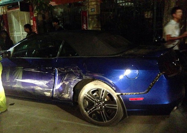 Vụ tai nạn xảy ra hồi tháng 9/2014, chiếc mui trần độc nhất Hà Nội tại thời điểm đó bị một xe khác đâm, khiến xe trầy xước nặng và móp ở bên sườn, cản sau bung. Ford Mustang dù không phải là siêu xe nhưng mẫu xe thể thao cơ bắp Mỹ được dân chơi xe Việt ưa chuộng.