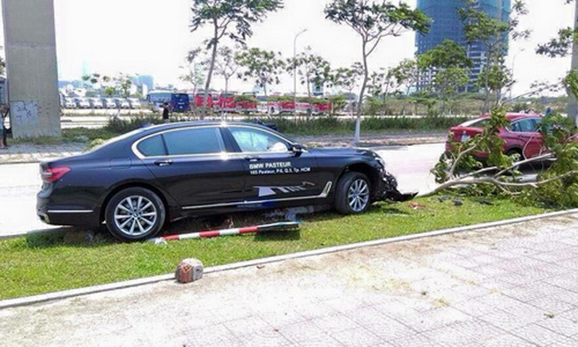 Mới nhất, chiều 10/4 tại Đà Nẵng, khách hàng lái thử BMW serie 7 mất lái, đâm đổ cây và cột biển báo khiến đầu xe hư hại nặng, tài xế may mắn không bị thương.