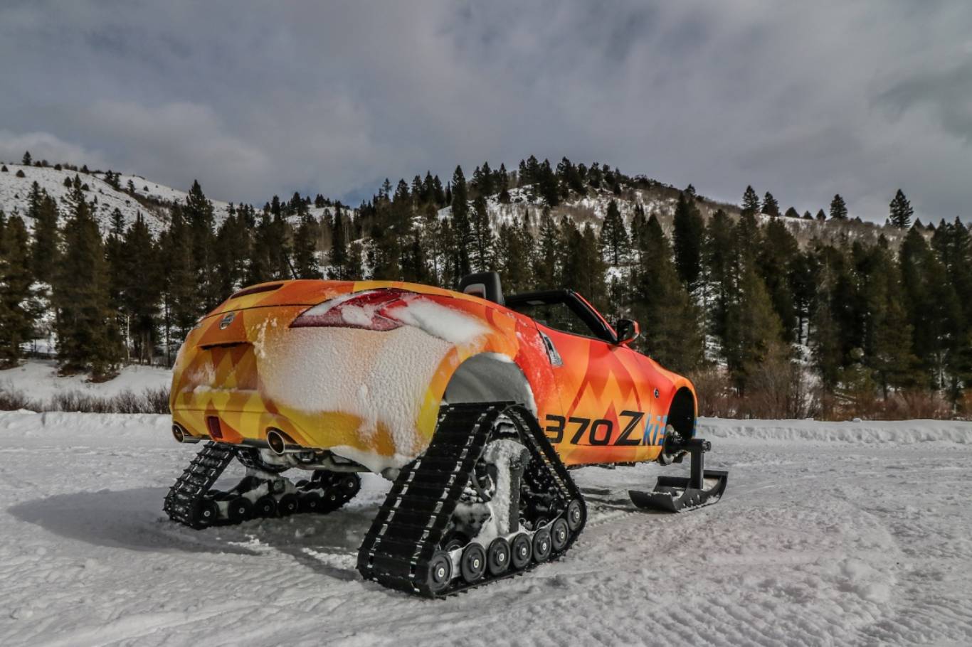 Chiếc xe này đã được thay thế hệ thống bánh trước bằng 2 ván trượt tuyết. Ở phía sau, 2 bánh sau được thay thế cặp bánh thông thường bằng hệ thống bánh răng trượt tuyết.