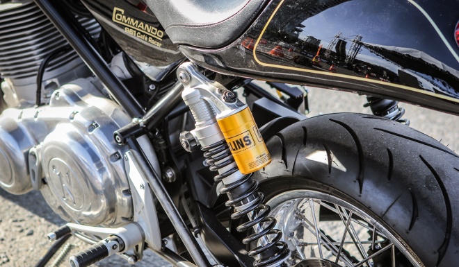 Giảm xóc sau của Norton Commando 961 Cafe Racer là Ohlins dạng lò xo và có gắn thêm bình dầu. Phuộc nhún này có thể điều chỉnh được độ cao, tải trọng và độ đàn hồi để phù hợp với từng điều kiện đường sá khác nhau.