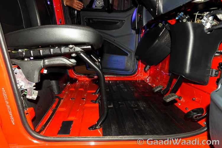 Trong khi đó, nội thất của xe thiết kế vô cùng tối giản và thô. Ghế trước đơn giản với ghế ngồi bọc giả da, dạng đứng thông thường.