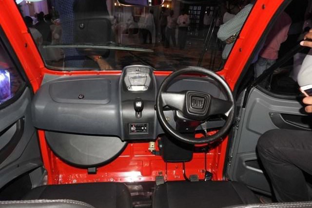 Là mẫu xe nhỏ và giá bèo nên thiết kế vô-lăng đơn giản dạng hình tròn cùng logo nằm giữa, bảng táp-lô thô và tối giản cùng một hộc đựng đồ nằm bên trái.