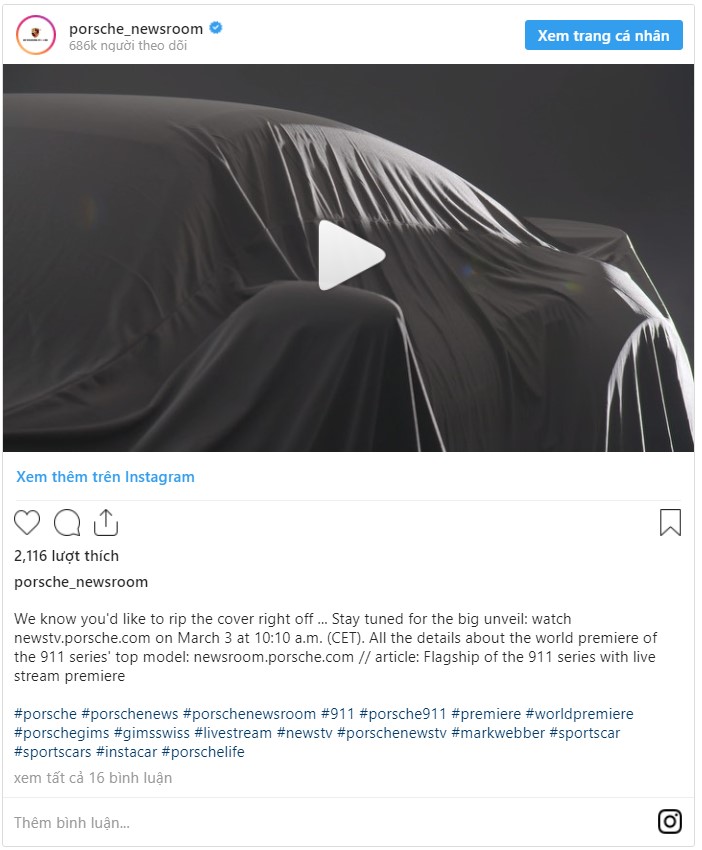 Triển lãm Geneva Motor Show 2020 bị hủy bỏ do những lo ngại về đại dịch Covid-19 khiến nhiều nhà sản xuất xe không thể giới thiệu các sản phẩm mới, công nghệ mới như kế hoạch. Một số hãng xe đã chọn cách ra mắt xe trực tuyến. Porsche là một trong số đó.