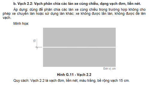 Từ 1/11 tới, quy chuẩn mới 41/2016 chính thức có hiệu lực, thay thế cho quy chuẩn 41/2012. Ở quy chuẩn mới, quy định về vạch kẻ đường rõ ràng hơn khi tách thành các nhóm vạch dành cho hai chiều xe chạy và vạch dành cho xe chạy cùng chiều.