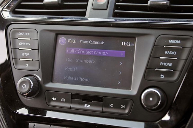 Là một mẫu xe giá rẻ, nhưng bên trong nội thất của xe khá tiện nghi dù không thật sự xuất sắc. Xe được trang bị vô lăng 3 chấu tích hợp các phím chức năng, màn hình cảm ứng 5 inch dành cho hệ thống thông tin giải trí và dàn âm thanh Harman lên tới 8 loa.