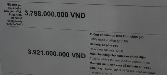 Giá bán cho phiên bản tiêu chuẩn và các trang bị tùy chọn