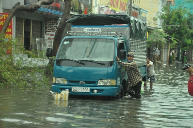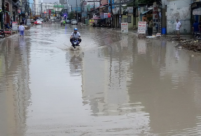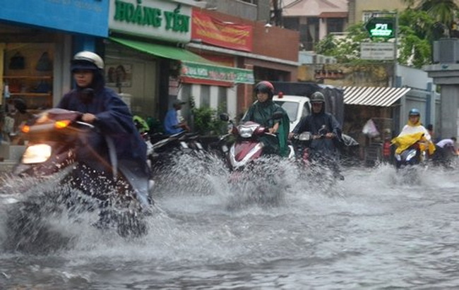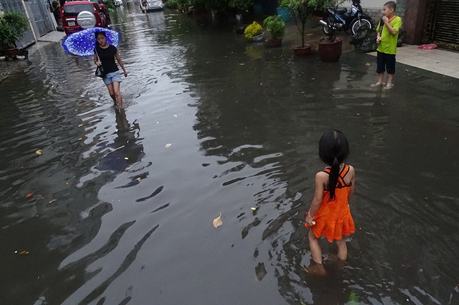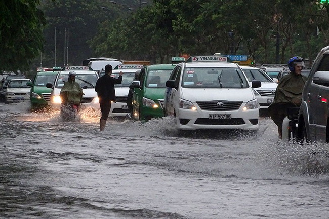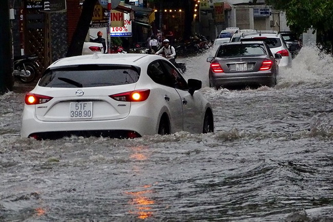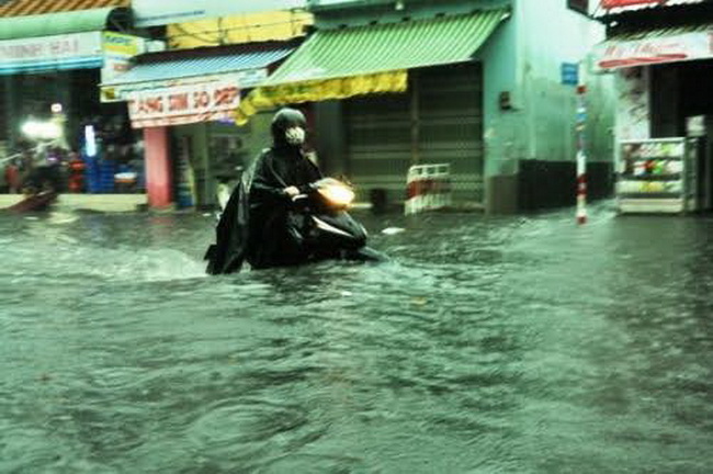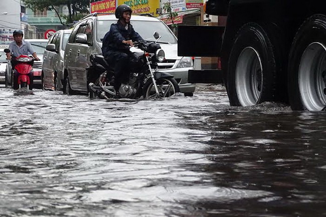 Sau cơn mưa trắng trời, đường phố Sài Gòn lại ngập nước mênh mông