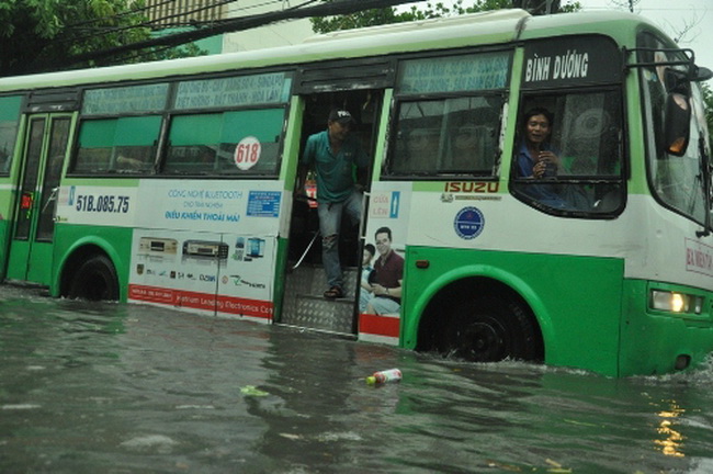 Thứ hai 30/05/2016 19:00 GMT+7Autopress.vn - Chiều 30/5, cơn mưa lớn kéo dài hơn 2 giờ trên diện rộng đã khiến nhiều tuyến đường Sài Gòn mênh mông nước, có nơi ngập hơn nửa mét khiến xe chết máy, giao thông bị rối loạn, đời sống người dân bị đảo lộn.