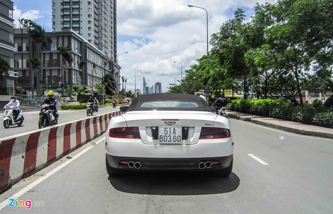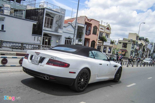 DB9 mui trần xuất hiện giữa đường phố Sài Gòn. Điểm đặc biệt trên mẫu xe này là nước sơn đen-trắng "không đụng hàng".