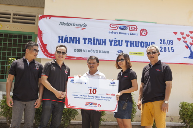 Tại trung tâm nuôi dưỡng người già neo đơn thuộc tỉnh Bà Rịa - Vũng Tàu, hội chủ xe Subaru đã trao tặng nơi đây 3 máy lọc nước trị giá 12 triệu đồng và số tiền hỗ trợ 10 triệu đồng cùng nhiều phần quà khác. Các thành viên trong đoàn được ban quản lý trung tâm đưa đi tham quan và thăm hỏi các cụ già đang sinh sống tại đây.