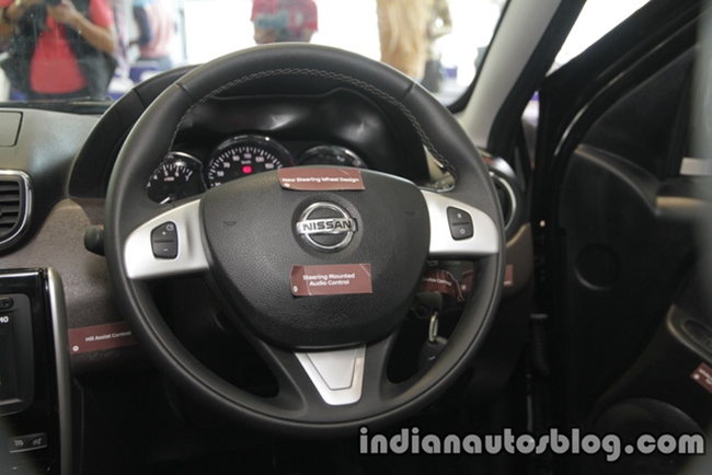 Vô lăng tích hợp phím chức năng, bệ tì tay cho người lái và đèn bên nút chỉnh cửa sổ cũng là những chi tiết khác biệt của Nissan Terrano 2017 so với phiên bản cũ.