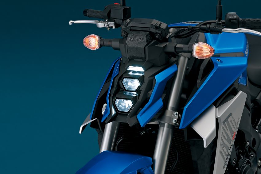 Suzuki GSX-S950 2022 được trang bị cụm đèn pha LED đôi xếp chồng lên nhau tương tự GSX-S1000. Mẫu xe mới này có 3 tùy chọn màu sơn trắng/đỏ, đen mờ và xanh kim loại Triton.