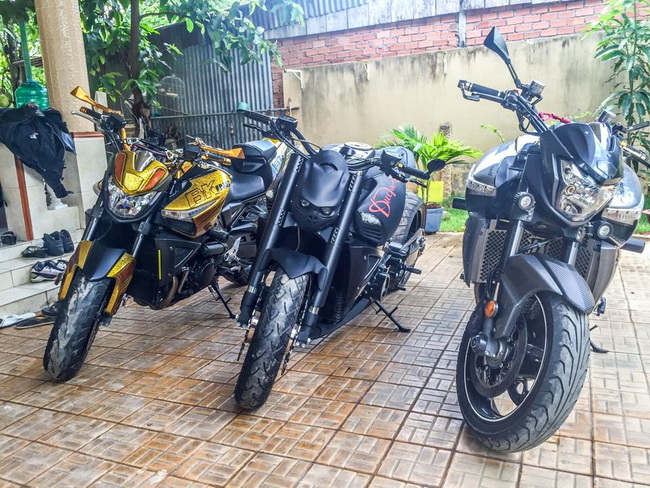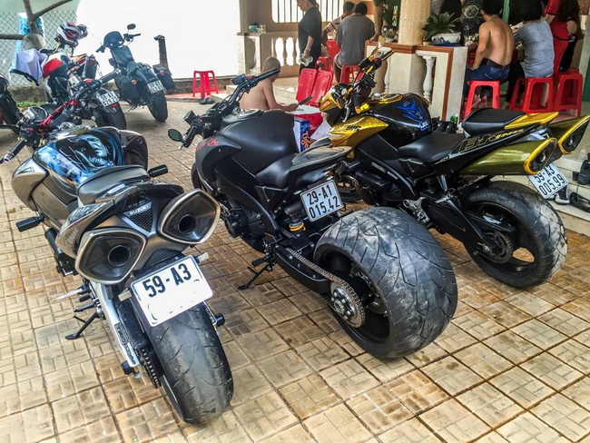 Chiếc xe B-king độ này khi đứng gần những chiếc b-king nguyên bản khác trông rất hầm hố hơn, và nỗi bật hơn với kiểu dáng lạ mặt.