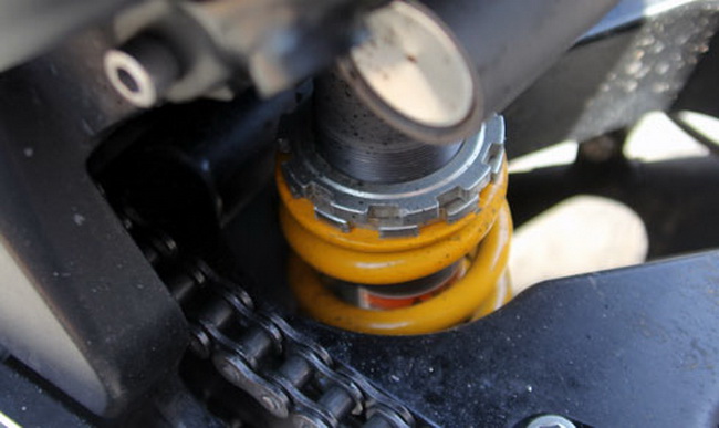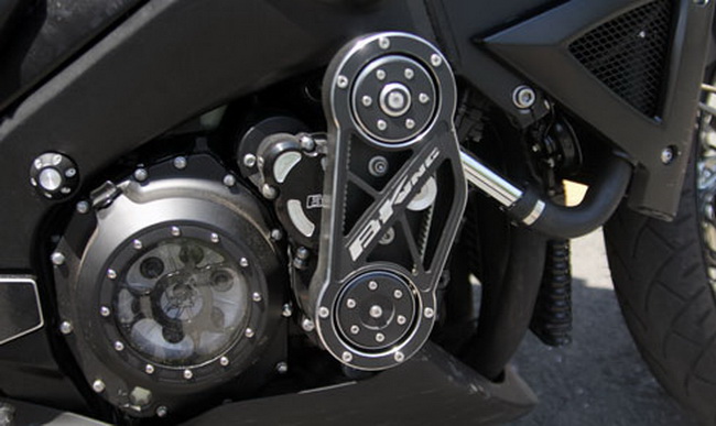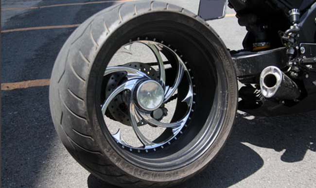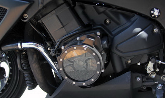 Nhưng trên chiếc xe "độ" này, khối động cơ càng thêm đặc biệt với nắp ly hợp trong suốt cho phép nhìn thấy chuyển động bên trong đi cùng bộ truyền dây đai hở bên ngoài. Bộ mâm mang thiết kế lạ mắt và khá hiếm trên thị trường, đĩa phanh đồ chơi cũng được thay thế. Bộ ống xả nhỏ gọn được đặt dưới gác chân sẽ tạo ra âm thanh uy lực hơn so với nguyên bản. Phần đuôi xe cũng được thiết kế lại gọn gàng hơn khi không còn bộ ống xả to lớn.