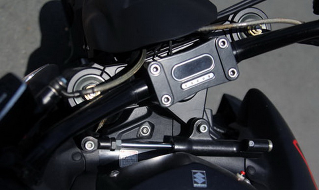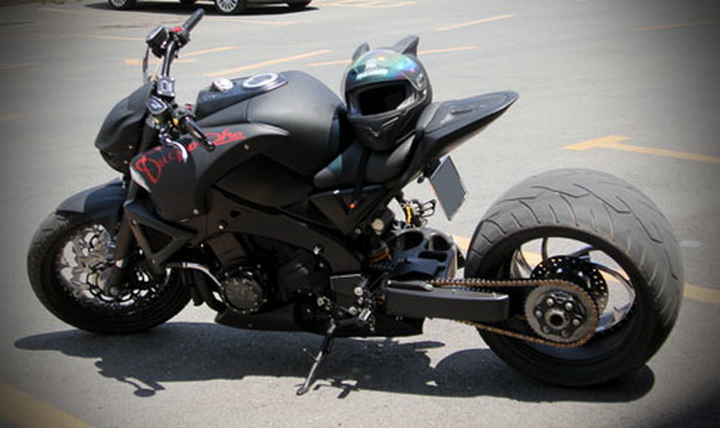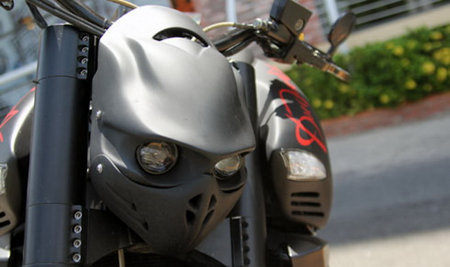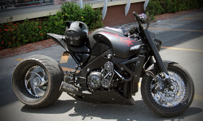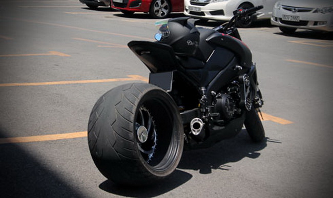 Suzuki B-king này độ theo phong cách hầm hố được chủ xe thay đổi khá nhiều chi tiết. Mặt nạ kết hợp cụm đèn pha mới với hai đèn bi giống như đôi mắt ở phía trước, toàn bộ thân xe được sơn lại màu đen. Để gắn được bánh xe sau cỡ lớn có kích thước 360mm chủ xe đã phải thay mới loại gấp đơn bằng nhôm đúc.
