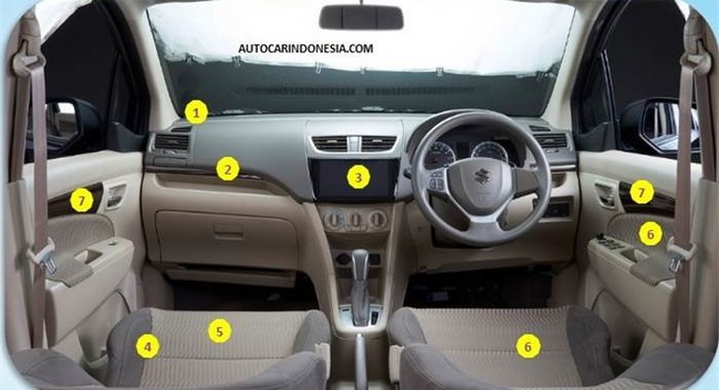 Nội thất xe cũng được chú trọng với trang bị cao cấp và hiện đại hơn như màn hình hỗ trợ 9 inch cho hệ điều hành Android và IOS, hệ thống loa trên bảng điều khiển, ngoài ra còn có nhiều chi tiết được ốp gỗ. Xe có chiều dài tổng thể là 4,325mm ( còn Ertiga là 4.265mm) và hệ thống an toàn gồm có ABS và EBD, đi kèm là 2 túi khí.