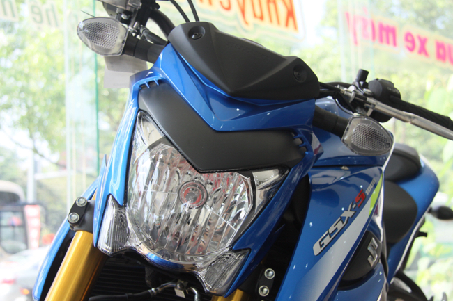 Phần đầu của Suzuki GSX-S1000 có thiết kế khá đơn giản với cụm đèn pha lớn. Phong cách thiết kế của Suzuki vẫn không thay đổi mấy trên mẫu xe này. Xe thể hiện được sự cơ bắp thông qua những chi tiết ốp gồ ghề và bo mạnh mẽ.