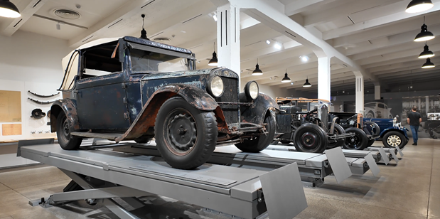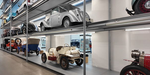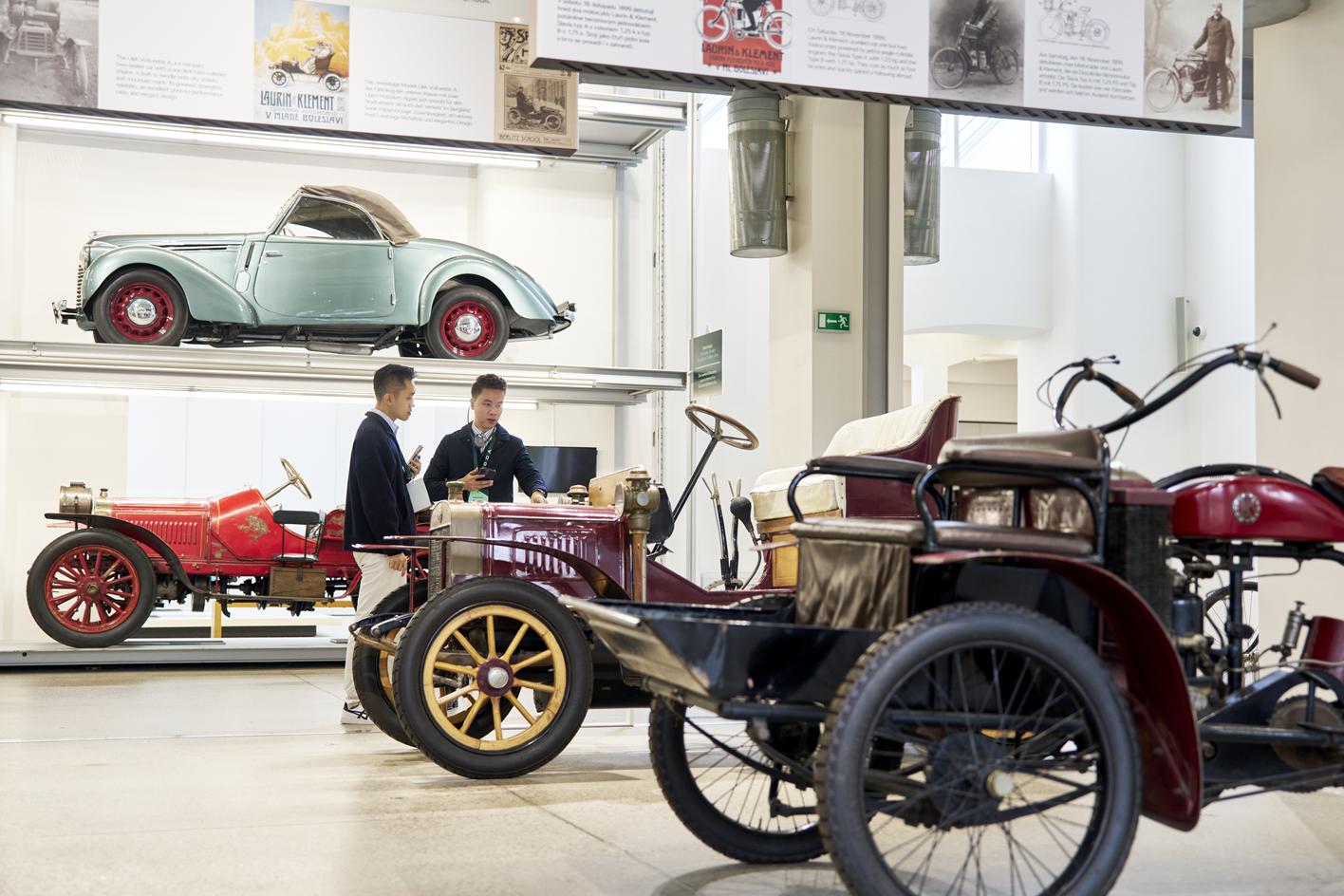 Bạn sẽ bắt gặp những chiếc xe Laurin & Klement Voiturette A – chiếc xe đầu tiên do hai người sáng lập Václav Laurin và Václav Klement chế tạo năm 1905. Gần đó là những mẫu xe từ thập niên 1920–1930 như Škoda 860, Škoda 935.. một biểu tượng xa hoa của thời kỳ trước chiến tranh, với thân xe đồ sộ và nội thất gỗ óc chó tinh xảo.