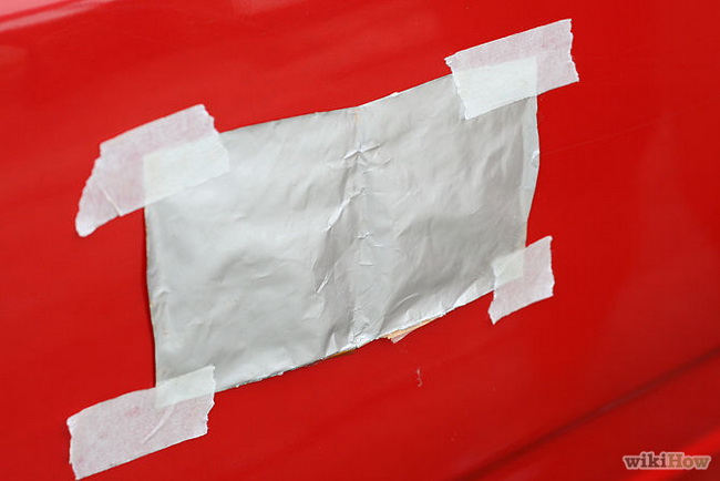 Bước 1: Xác định vị trí vết lõm, đặt miếng nhôm lên vùng lõm sau đó cố định lại bằng keo dán. (Bước này nhằm giữ nhiệt cho vùng lõm trước khi tiến hành các bước sau).