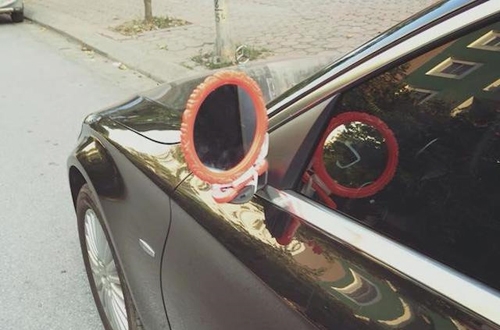 Cách tốt nhất là bảo vệ gương thật cẩn thận như chủ xe trong ảnh, đủ các loại xích khóa.