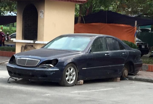 Mercedes xấu số, mất "mắt", mất logo, mất chụp la-zăng và mất cả bánh sau.