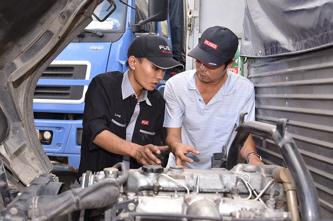 Song song đó, hơn 130 xe tải và 250 xe khách tại 2 miền Nam Bắc cũng được các kỹ thuật viên kiểm tra, chăm sóc và tư vấn miễn phí một cách toàn diện: Bệnh Viện Ô Tô phụ trách scan lỗi điện tử, Michelin kiểm tra và tư vấn về lốp, GS đảm nhận việc bảo dưỡng ắc quy, FUSO hướng dẫn cách sử dụng xe hiệu quả, tiết kiệm và an toàn.