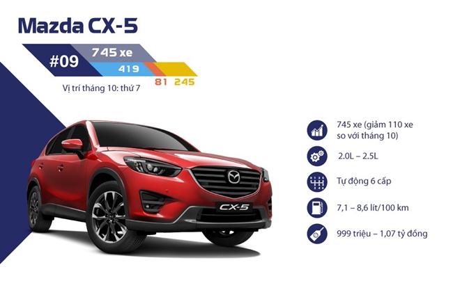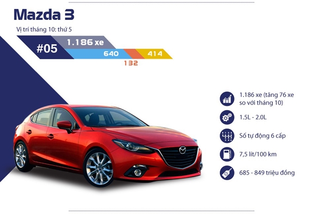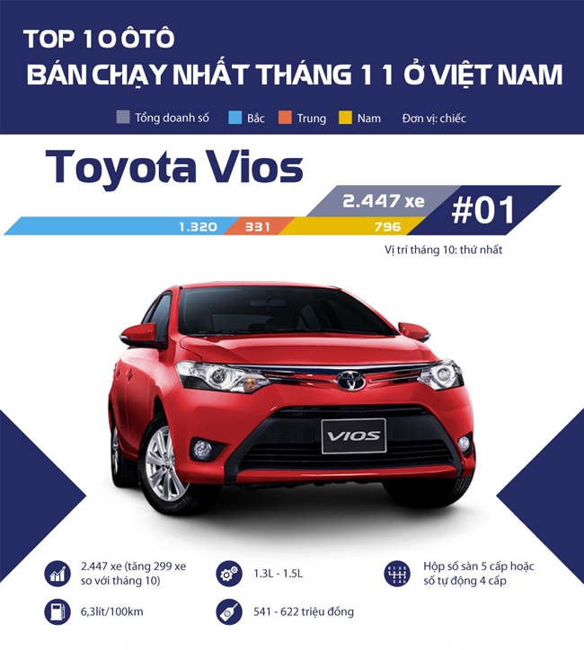 Chủ nhật 11/12/2016 18:00 GMT+7Autopress.vn - Trong bảng xếp hạng này, Toyota Vios đã tiếp tục khẳng định vị thế dẫn đầu của mình với doanh số 2.447 xe trong tháng 11.