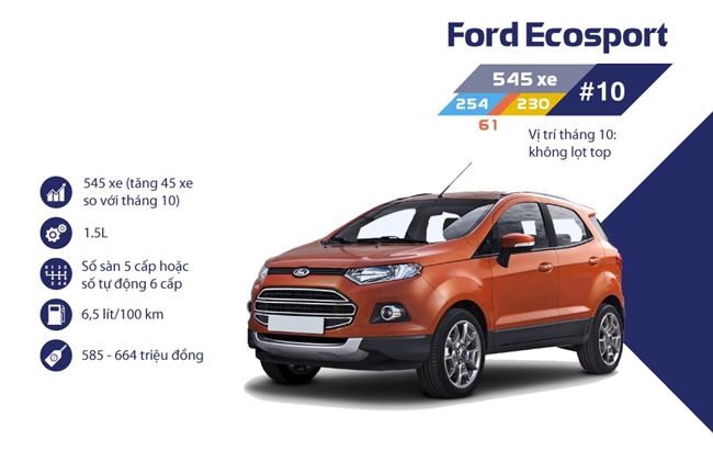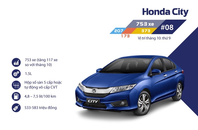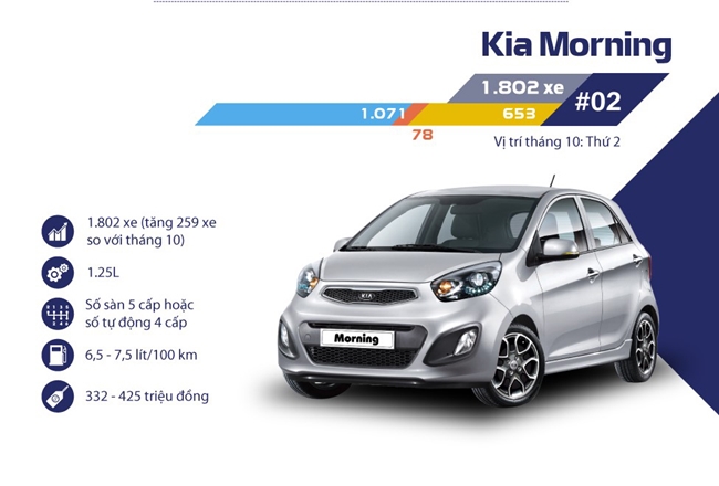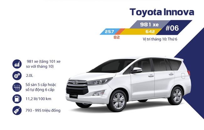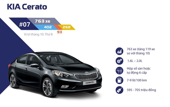 Top 10 xe bán chạy nhất Việt Nam tháng 11/2016